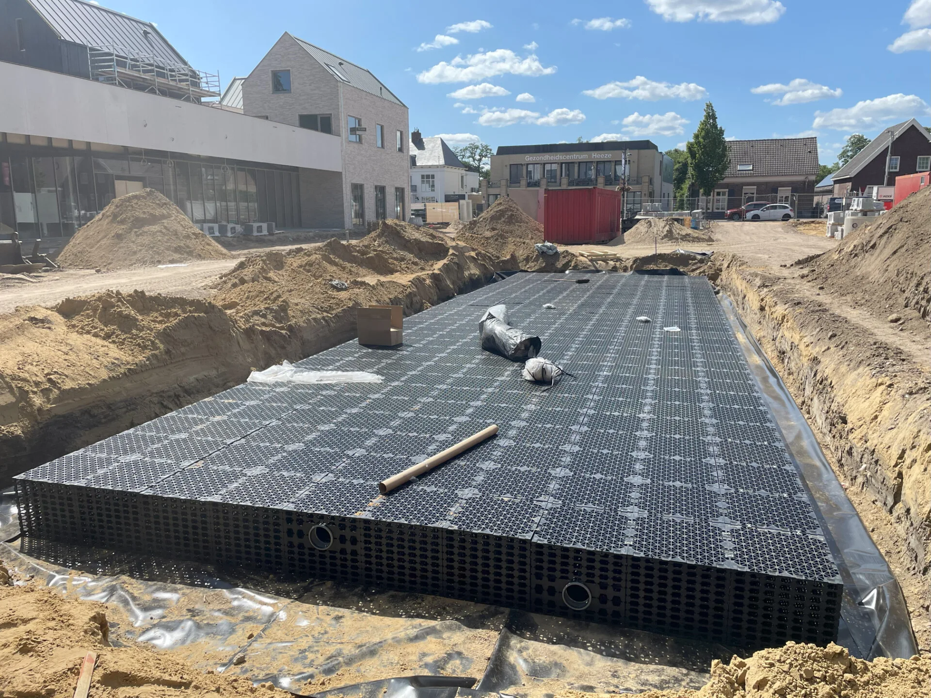 Het terrein lag aanvankelijk erg hoog en moest volledig worden ontgraven en verlaagd. Daarna volgde de aanleg van nieuwe riolering (VWA en HWA), mantelbuizen en een infiltratiekrattenveld. Ook funderingen werden aangebracht: menggranulaat onder de rijbanen en bomensubstraat onder de parkeerplaatsen.